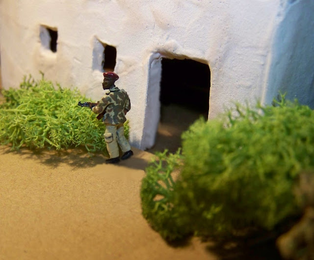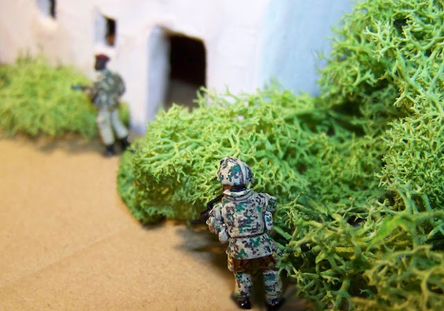 Eigentlich ist der für meinen besten Freund gedacht, der mir schon seit Monaten in den Ohren liegt, wie gern er doch Force on Force in Afrika spielen würde. Tja, nachdem ich zufällig über 20 sehr günstige Minis gestolpert bin, die es second hand zu kaufen gab (eigentlich sollen es die Verteidiger von Grenada sein, die in den 80ern Besuch von den Amerikanern bekamen. Aber mit ihrem Soviet-Equipment sind die auch als Afrikaner oder beliebige andere Dritte-Welt-Armee einsetzbar, und für 10€ konnte ich nicht nein sagen zu der Möglichkeit, meinem Kumpel seinen Wunsch zu erfüllen)