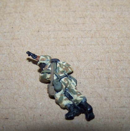 Das Fertigungsstellungstempo ist bei gleich uniformierten Typen tatsĂ€chlich recht hoch, zumindest wenn man nicht penibel darauf achten muss, dass jeder Strich auf der Uniform genau an der richtigen Stelle sitzt - bei moderner Camo gehts ja eher um irregulĂ€re Muster, die die Kontur und Form des TrĂ€gers verzerren. Da die alle das gleiche Muster tragen, ist das relativ schnell aufgetragen - Grundfarbe, von jeder Farbe auf jede Figur ein paar Striche, geht wie Fließbandarbeit, wenn mans darauf anlegt und sieht trotzdem ordentlich aus ;)