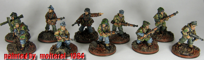Die Jungs sassen jetzt schon ein paar Jahre nackt in der Schublade, da mir die Sculpts nicht wirklich zugesagt haben, aber ich habe mich jetzt doch rangetraut und siehe da... ich finde sie jetzt eigtl. gar nicht mal mehr so schlecht. Leider brauche ich anscheinend mal ne neue Kamera, da die alte die Farben irgendwie nicht richtig einfĂ€ngt. Auch einige der Highlights v.a. bei den grĂŒnen Uniformteilen werden einfach geschluckt.