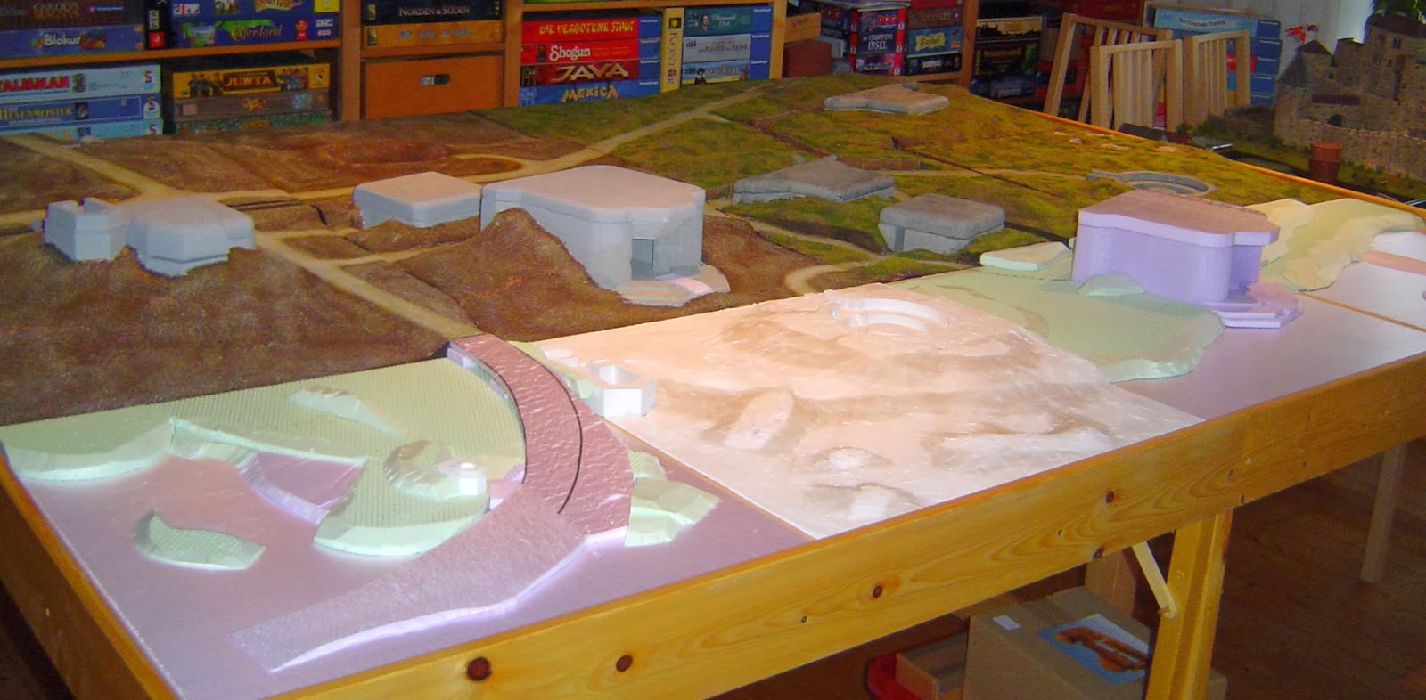 zu schwarzer Herzog: Teile, von denen ich ausgehen, dass ich sie öfter verwenden werde, dupliziere ich meist. Das spart mir dann eine Menge Zeit. Und die Bunker ja Regelbauten sind, sozusagen Massenware, bot sich das an. Alle Bunker sind 2 - 4 mal auf der Platte vertreten und wer weiss, was ich in diese Richtung noch machen werden. Nur die beiden großen Kasematten habe ich komplett aus Styrodur gebaut. Da waren mir die Formkosten zu hoch.