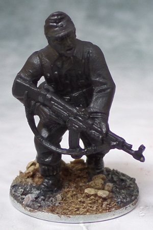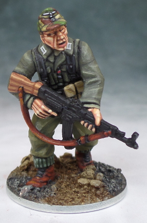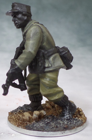 Now to the (in my opinion) most delicate but most rewarding part: Painting the skin. The face beeing the natural focus of most miniatures it deserves a little more attention than the use of just a triade. Also done in this step were the insignia like the Litzen on the collar and the eagle on the Feldmütze (Field cap) These were done in a very light, almost white grey.