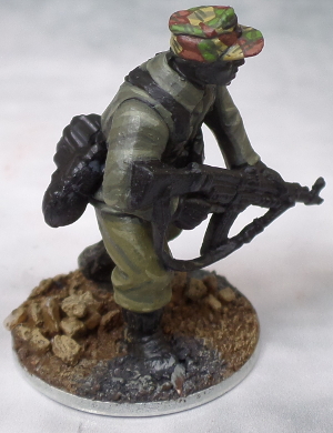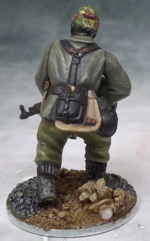 The trousers were painted in a little more greenish hue. Here I\'ve to apologise to everyone I\'ve sent a colour guide by mail as I mentioned a mix of VMC German Grey and VMC Russian Green for the base colour. As you\'ll probably have noticed this looks somewhat odd. So here\'s the \'right\' triade:
