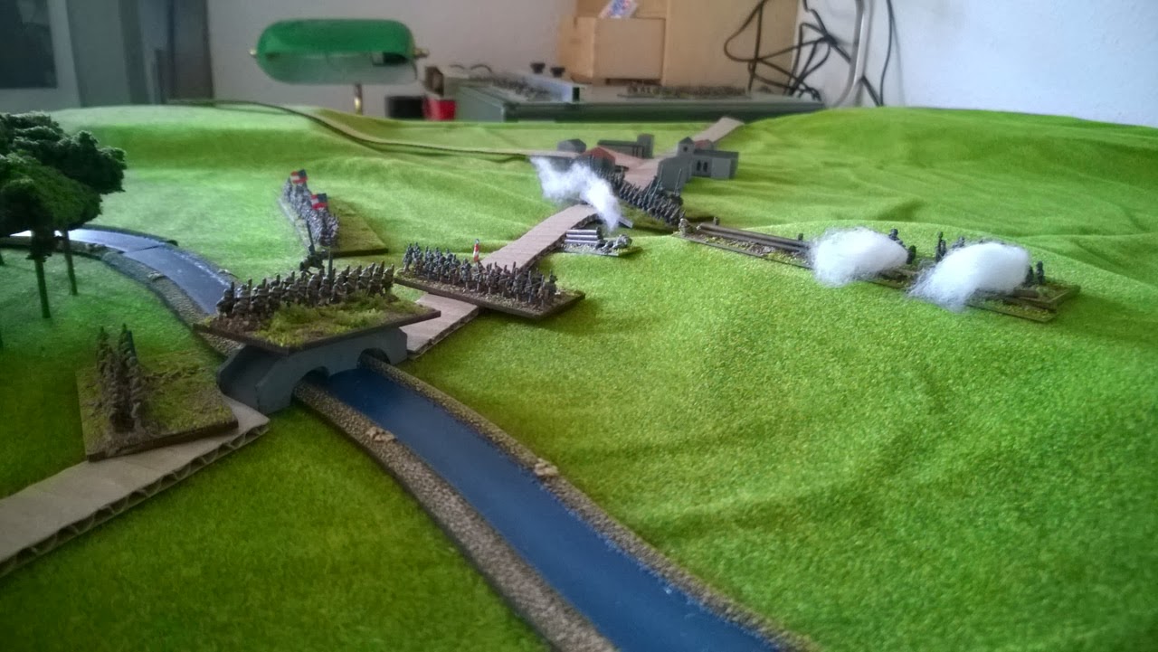 Insgesamt hatte ich viel SpaĂ beim spielen, die Regeln sind wirklich simpel, entfalten aber doch ihre Wirkung und lassen das Kampfgeschehen immer hin und her wogen. Die befestigte Stellung von vorn anzugreifen wĂ€re vermutlich auch ohne das Nadelöhr am Fluss schief gegangen und ich denke genau so sollte es auch sein. Hoffentlich hat es Euch auch gefallen und Ihr hattet beim Lesen des kleinen Berichts so viel SpaĂ wie ich beim Schreiben gehabt habe - aber jetzt mĂŒsst Ihr mich entschuldigen: ich muss dringend StraĂen bauen!