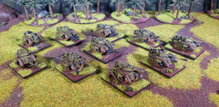 Ich bin nicht so aktiv auf Sweetwater. :-) Die Bases sind MDF, habe ich bei Minibits bestellt. ChimĂ€ren Chassis steht auf 20x30mm, Russ auf 25x35mm, Infanterie auf 40x15. Die Superschweren mĂŒssten 50x40mm sein, bin mir gerade nicht so sicher.