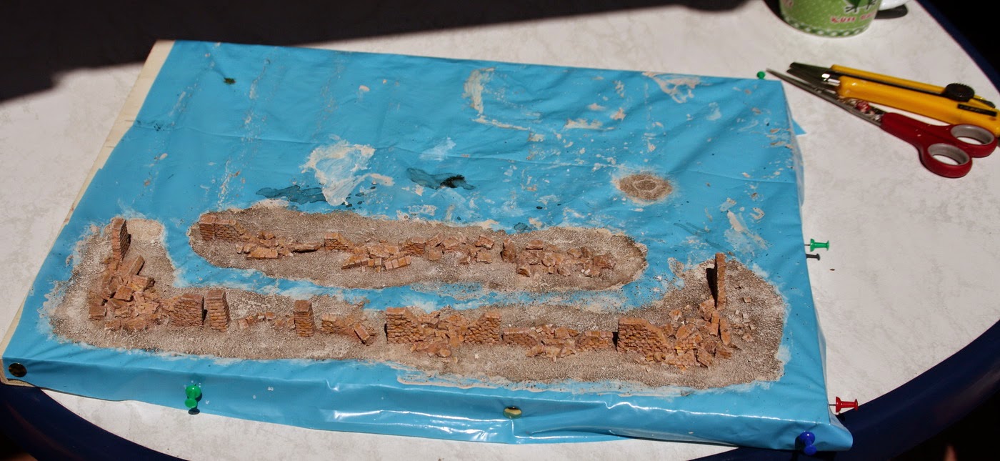 Das aufbringen der Mauerteile (man kann diese Teile natürlich auch vorher bemalt haben) ist relativ einfach, nur einmal eingesetzt, haftet das Acryl sehr hartnäckig.