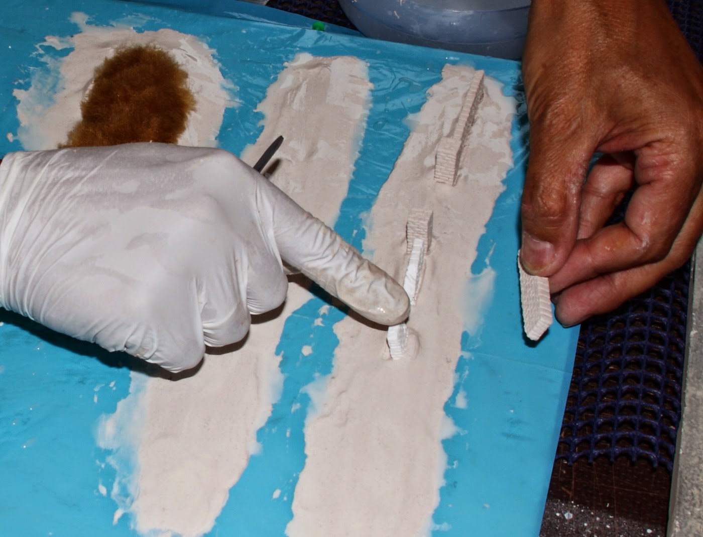 Die Bestreuung erfolgt im Prinzip erst das grobe Streu dann immer feiner werden. In meinem Fall erst grober Sand an die Stellen, wo er hin soll, danach alles mit feinem Sand bestreuen.