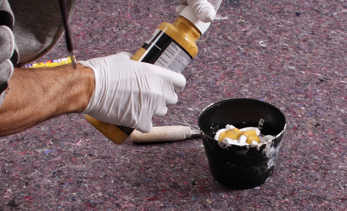 Dann gebe ich die Abtönfarbe hinzu, ich habe hier nur mit Ocker