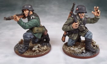 und da so ein Panzer alleine ein wenig einsam ist, hab ich heute die ersten seiner Fusslatscher Kumpels fertig bekommen. Natürlich hab ich mich nicht mit den einzelnen Trupps angefangen, weil das kann ja jeder. Nö, ich hab erstmal ein Waffenteam mit Panzerbüchse 39 sowie einen Scharfschützen und seinen HiWi bemalt.