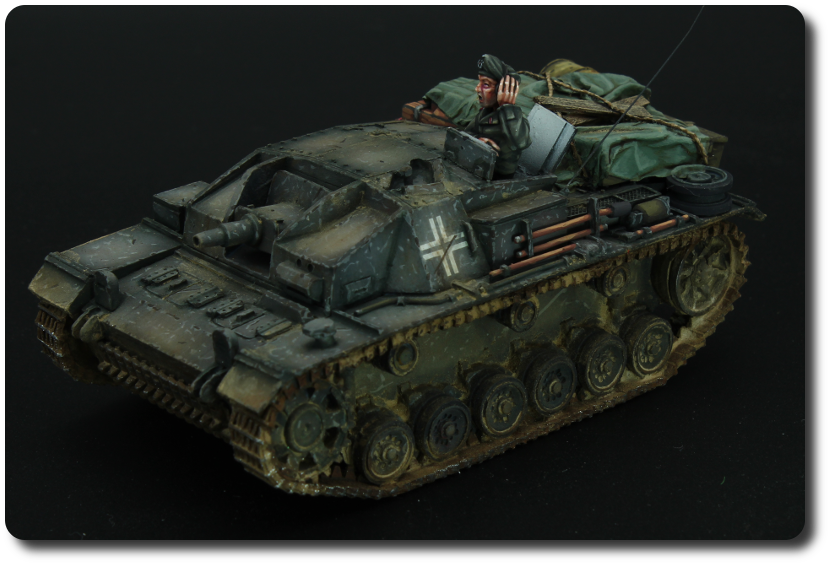 Das Weathering am Stug is einfach super, genug, daĂ es Wirkung entfaltet, aber nicht soviel, daĂ es sich in den Vordergrund drĂ€ngt. Wie ein gut dosiertes GewĂŒrz - verleitht der Speise eine Note, schmeckt aber nicht vor. Der Kommandant is sowieso der Hammer. Einzig das Stowagepack am Stug könnte imo mehr Dreck vertragen, aber das is Geschmackssache