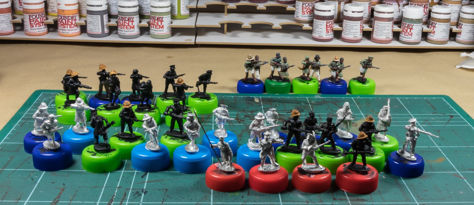 Pedivere, der hier richtig tief im Thema ist, hatte mir noch den Tipp gegeben, mir mal aus der Darkest Africa Reihe von Copplestone deren Zanzibar Regulars anzuschaun, ich wollte mir noch von Empress deren italienische Askaris unter die Lupe nehmen und für die LMG kamen die \"British Lewis Guns\" aus der \"Great War in Africa\" Reihe vom Brigade Games in die engere Auswahl.