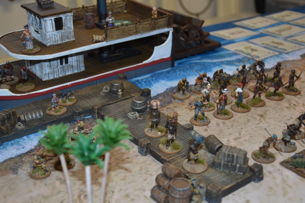 Also wie spielt es sich denn so?? Es ist auf alle FĂ€lle mehr Abenteuer als reine taktische Simulation. Wer nicht mit Unbekanntne leben kann ist hier verkehrt, wer kein Risiko eingehen will auch, wer gerne ZĂŒge berechnet so oder so. Es ist gerade schwierig zu spielen zu kommen aber wir versuchen es und letztens ging Harald mit seinen Truppen in einen Wald (=gefĂ€hrliches GelĂ€nde) und dann wĂŒrfelt man auf der Tabelle was so passiert.....nun die erste Aktion des Spieles bescherte uns einen veritabelen Wolkenbruch der das ganze Spiel ĂŒber anhielt und alle Fernkampfwaffen gleich einmal um einiges schlechter macht....sein Stammesmagier sprengt sich alsbald selbst in die Luft und seine Kannibalen werden in StĂŒcke geschossen. Derweilen hacken sich meine Baluchis durch seine Truppen, nur um dann kurzfristig in jungen Kriegern stecken zu bleiben...waren wohl mĂŒde. Andere Flanke derweilen frei, ich will dort zum Dorf rennen um ein wenig zu plĂŒndern und so...zack springt mich ein Löwe an....tjo...so spielt sich das alles. Uns macht es irrsinnig SpaĂ, es ist halt wirklich cineastisch....aber jetzt nicht so im Sinne von Bolt Action sondern halt geplant cineastisch und es hat nette Idee mit Handkarten.....