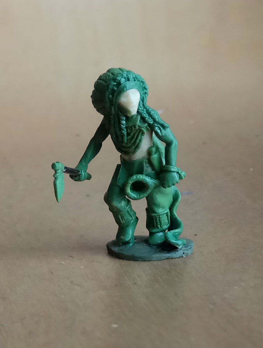 Ich werde mich fortan eine Weile an die Crow-Krieger konzentrieren, die ein bisschen \"moderner\" aussehen (mit Pompadour-Frisur und so), da mir die anderen wegen der kreativen Haarschnitte und Haarschmuck viele Probleme beim giessen bereiten würden. Bis ich mir überlege, wie ich es lösen kann, mache ich wenigstens ein bisschen weiter ;-)