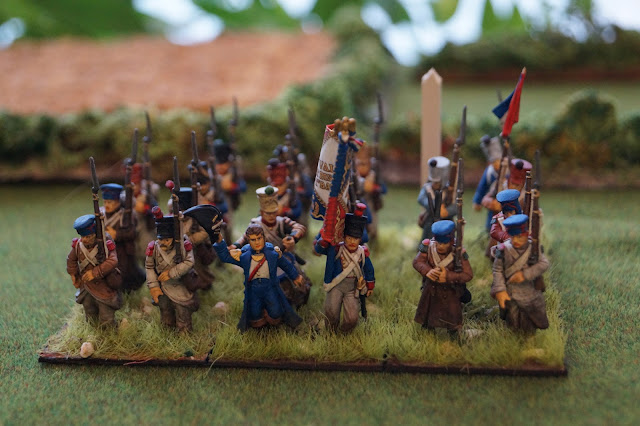 Das Einfachste ist vielleicht Warlord Portugiesen zu nehmen, mit preussischem Kommando und abgefeilten Tschakoemlemen. Die Reservisten haben zwar recht schnell die unpreussischen Brustgurte entsorgt, aber das ist nicht so wichtig. Mit französisvhen Uniformen geht es ähmlich, nur sind da die Gewehre schwer zu erklären.