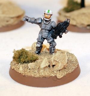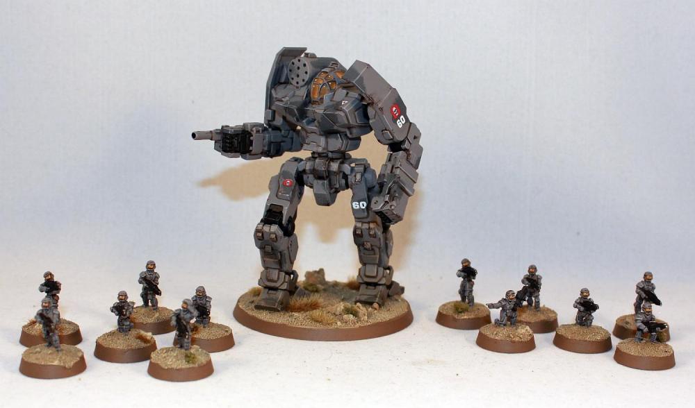 Die Soldaten sind von Ral Partha Europe, Critical Mass Arc Fleet Soldiers.