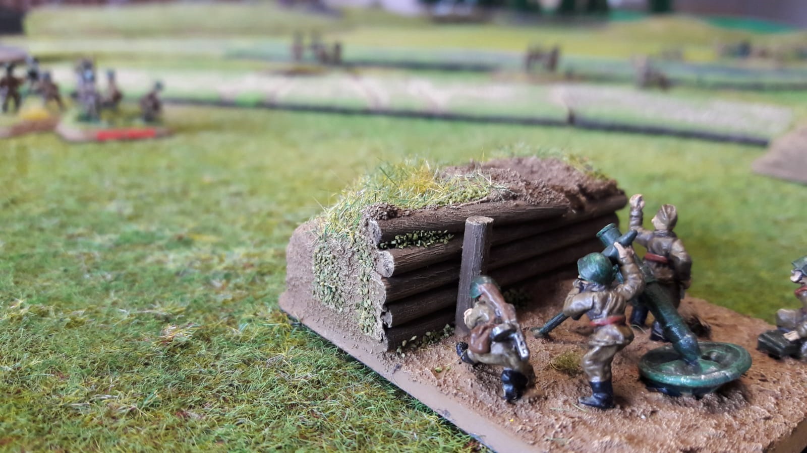 Wir hatten uns, angelehnt an die Kampagnenbeschreibung, für einen Trench-Fight entschlossen. Diese Mission kann man im FOW-V2 Regelbuch finden und ermöglicht u.a. das Aufstellen von Fortifications. Mit dieser Mission lassen sich sehr gut die sowjetischen Verteidigungsbemühungen darstellen.