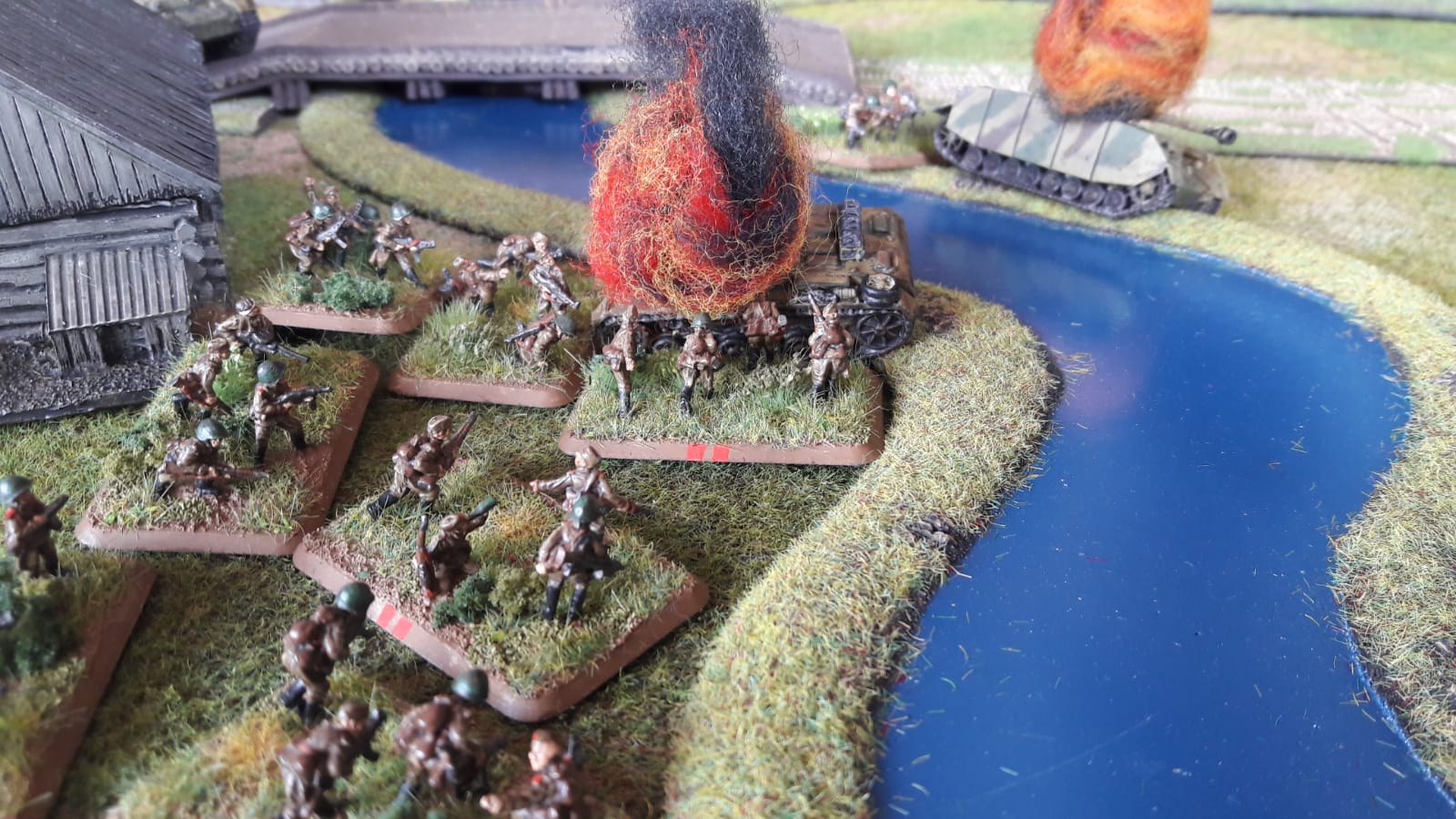 Die Verteidigung am Fluss steht. Dort stehen sich jetzt die Infanterieeinheiten gegenüber.