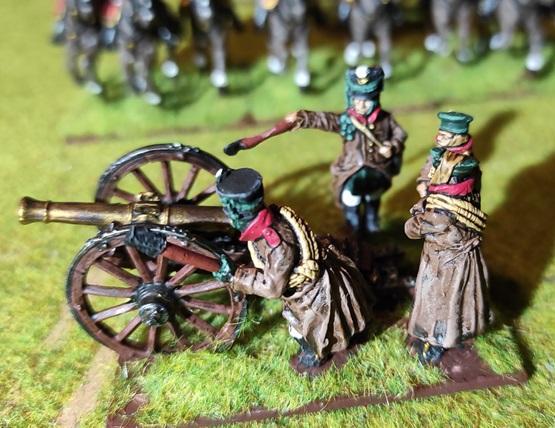 Top, sehr schön. Eine kleine Anmerkung zu den Uniformen der Kanoniere. Die Troddeln an dem  Tschako waren rot und nicht grĂŒn und der Kragen schwarz mit roter Paspelierung. Das Du die MĂ€ntel braun gemalt hast finde ich gut. TatsĂ€chlich waren sehr viele Grau-und Brauntöne bei den MĂ€ntel vertreten.  :)