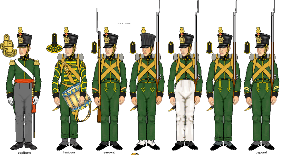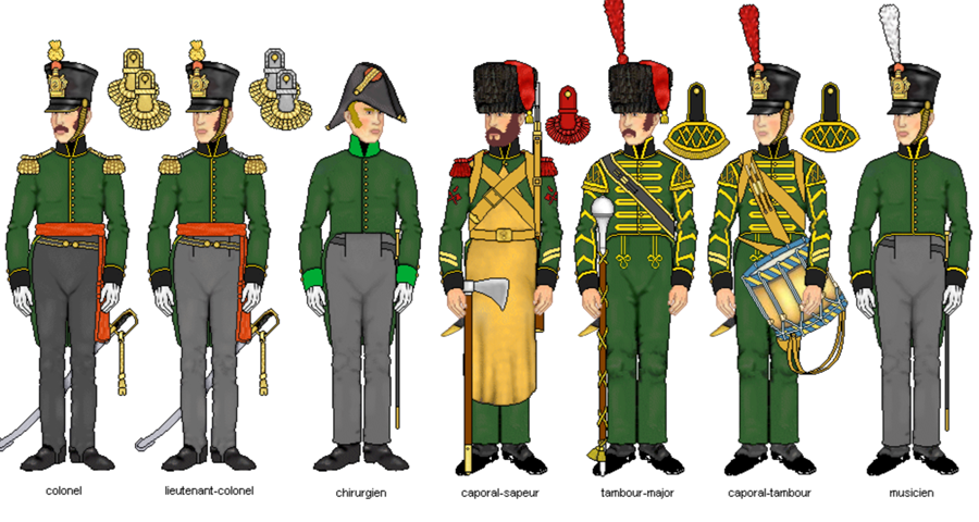 Dieses Regiment kämpfte 1806 und 1807 aud französischer Seite gegen Preußen und Schweden und nahm an der Schlacht bei Jena teil. Während der Feldzüge auf der Iberischen Halbinsel (1808–1813) kämpfte es auch gegen Großbritannien und Spanien. Ab dem 15. Juni wurde es von Major Sattler vom 1. Bataillon kommandiert, da der Oberst erkrankt war. Bei Waterloo kämpfte es auf Wellingtons Seite.