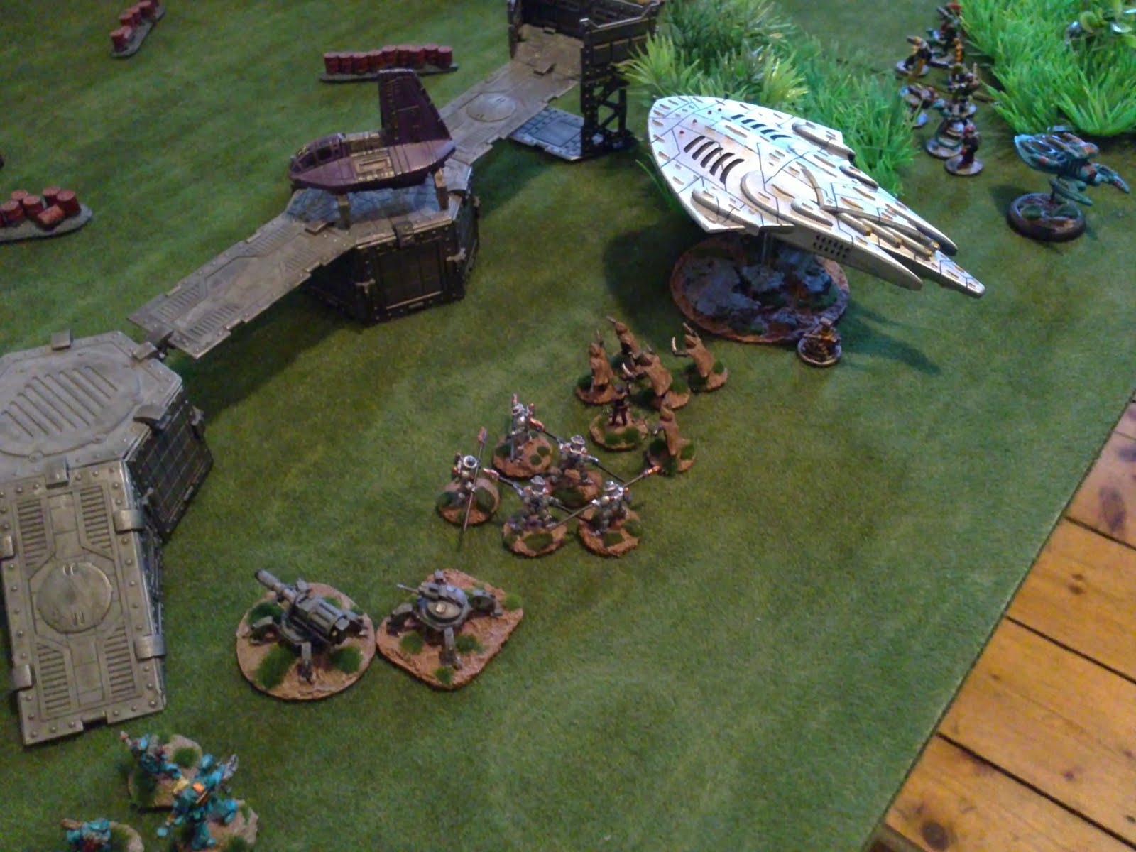 also ich bedanke mich mal herzlich bei allen. Vor allem bei Don Voss mit seinem schicken Dungeon Crawl, 08/15 der es mir ermöglicht hat beinahe 2/3 meiner 15mm Scifi Sammlung in einem Spiel zu nutzen, Puppenfleisch mit seinem immer wieder begeisternden Gelände & Ideen und bei meinem Mitstreiter im fernen All Oisin.