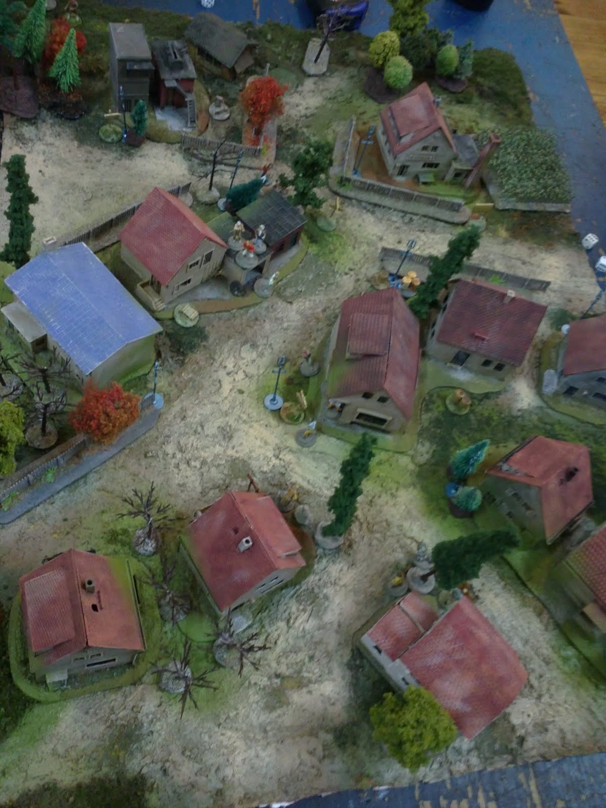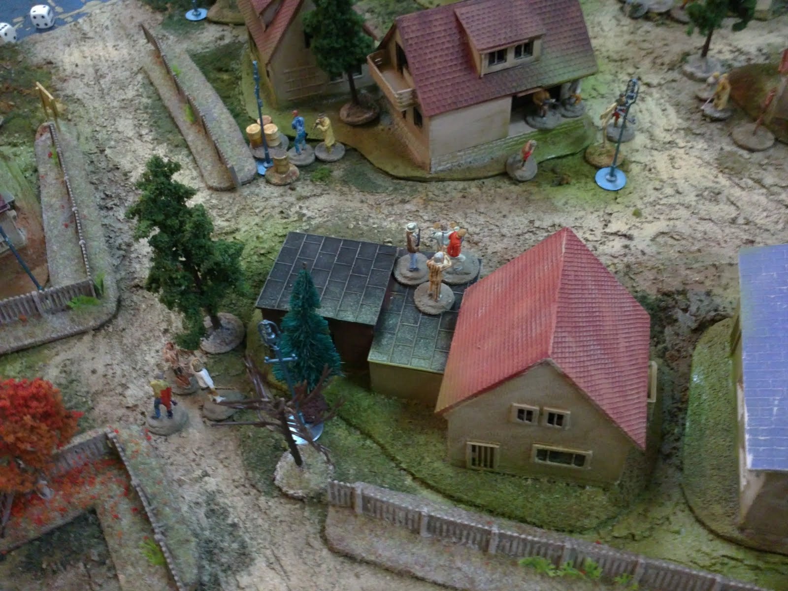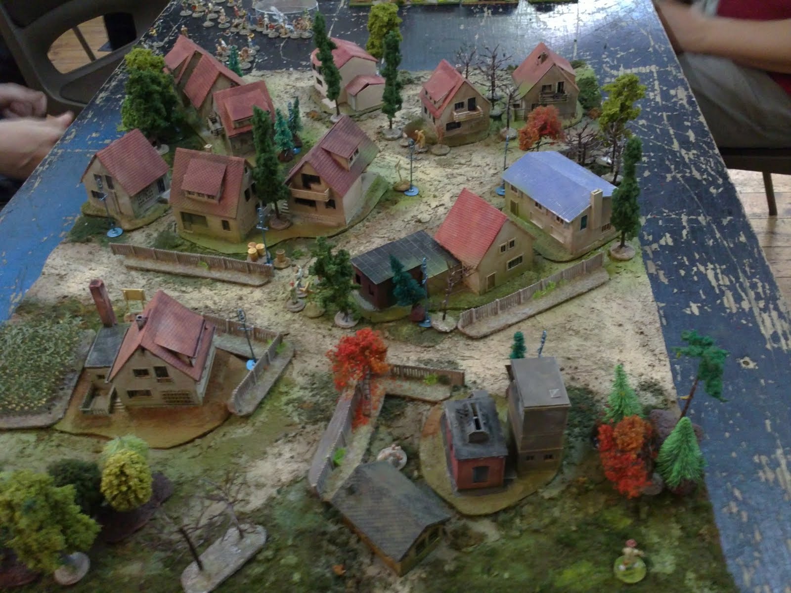 (b) Auf einer 50 x 70 Spielmatte mit 1:72 Plastik-Minis hat Xothian eine Einführung in AmbushAlley gegeben. Im Dorf Prschrkrczk in der unabhängigen balkanischen Republik Molvronien, haben zwei Verfeindete und zugleich halbverschwägerte Dörfer um die \"Opa-Geisel\" gekämpft. Den Befreiern ist es gelungen, den Showdown in der Autogarage blutig für sich zu entscheiden, ihren Opa aus der Hand des fremden Dorfes zu befreien, selbst eine prschrkrczksche Geisel zu nehmen und damit den lokalpolitischen Spieß komplett umzudrehen. Damit ist in drei Dörfern umkreis sichergestetllt, dass jeder weiß, das die Prschrkrczkanier echte Looser sind. Vielen Dank, Xo, für diese Einführung!