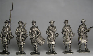 Six different bonnie laddies to reinforce his Brittanic Majesties Army and terrify the French. Front and back views for your inspection gentlemen. Click on the pics to see an enlarged view as usual.