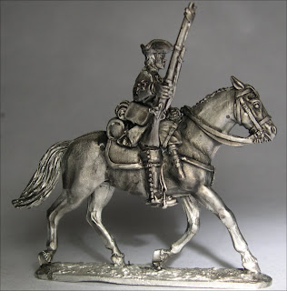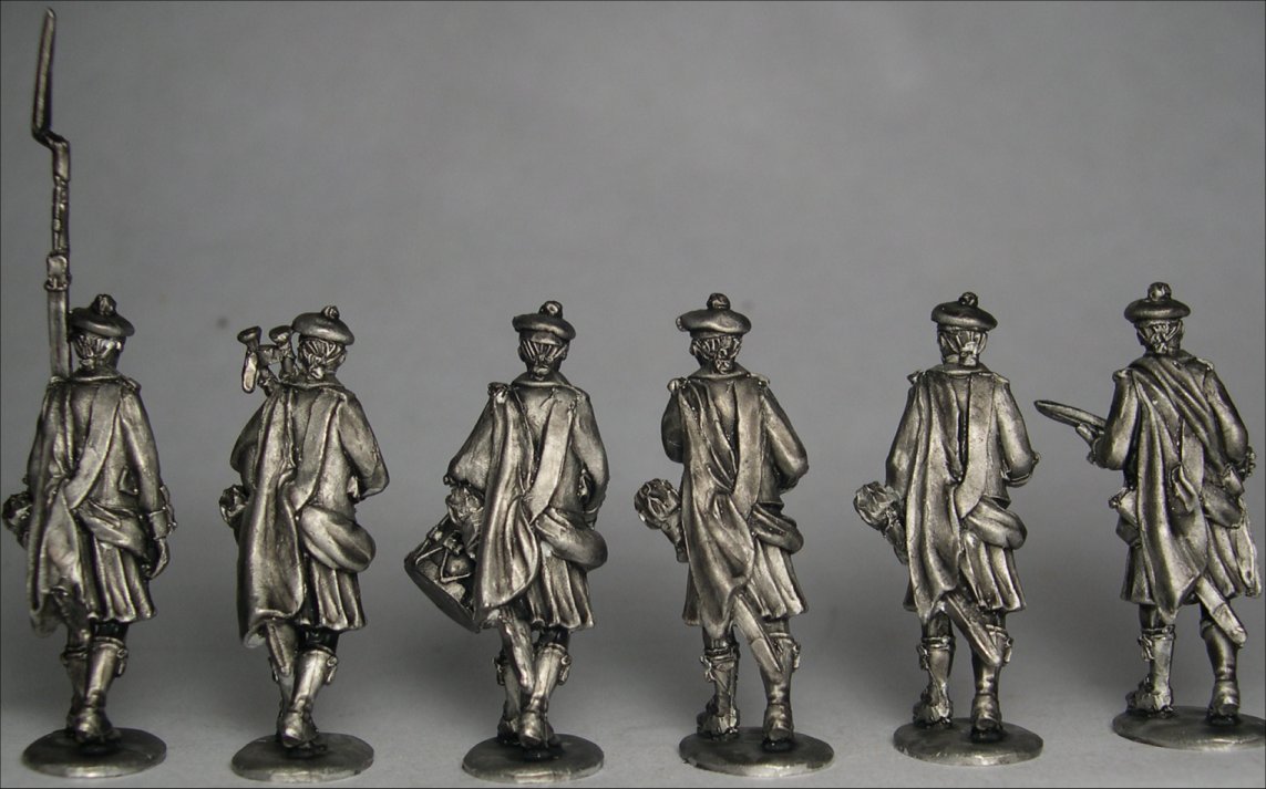 Well that was a surprisingly quick turnaround. You can tell there is no major show upcoming like Salute, when Stewart at Griffin Moulds can turn these around in just over a week. So, on to the new stuff then, which arrived by courier this afternoon . . . .Six different bonnie laddies to reinforce his Brittanic Majesties Army and terrify the French. Front and back views for your inspection gentlemen. Click on the pics to see an enlarged view as usual.Did I say terrify the French? Well, these fellas don\'t look too terrified to me. The French Dragoons are here, in the following order:- Officer, Ensign, Drummer and two views of the trooper. Again, click on each pic for a bigger view. I hope everyone likes them as much as I do.CLICK THE LINK FOR BIG PICS AND INFO