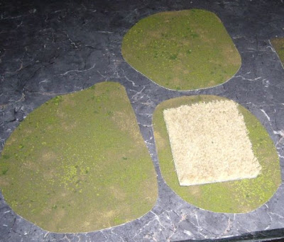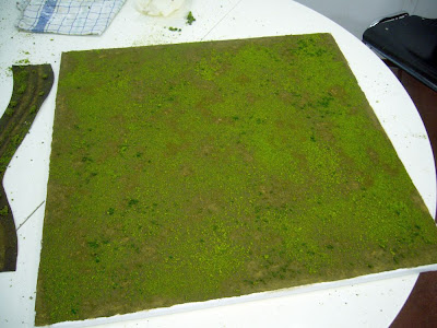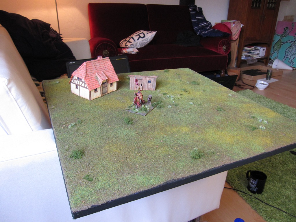 Ich habe jetzt auch meine ersten zwei Versuche mit dieser Methode hinter mir. Allerdings wollte ich keine ganze Matte, sondern nur Geländebases für FoG erstellen.