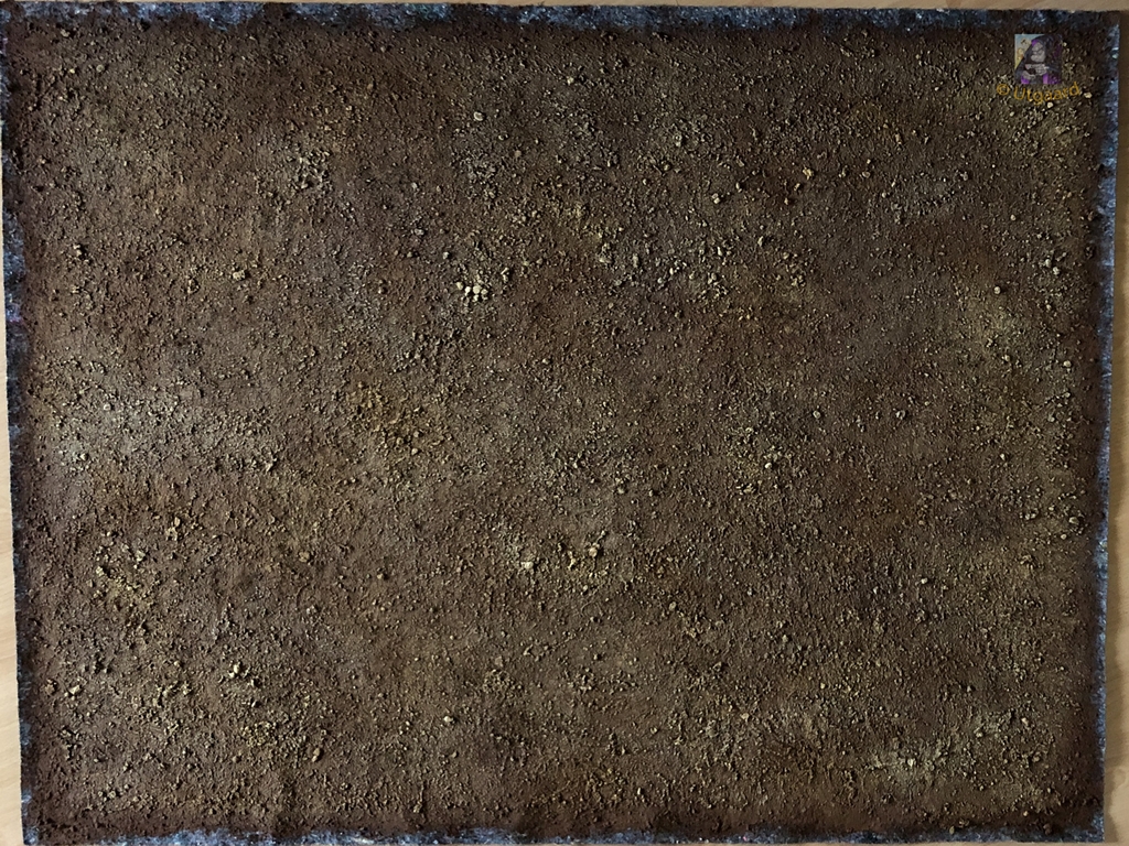 Als erstes hier eine neue Geländematte nach der bekannten Sand/Acrylgemisch-Methode - als Stoff hier Malervlies, da der sich durch die beschichtete Rückseite beim Trocknen des Acryl nicht zusammenzieht.