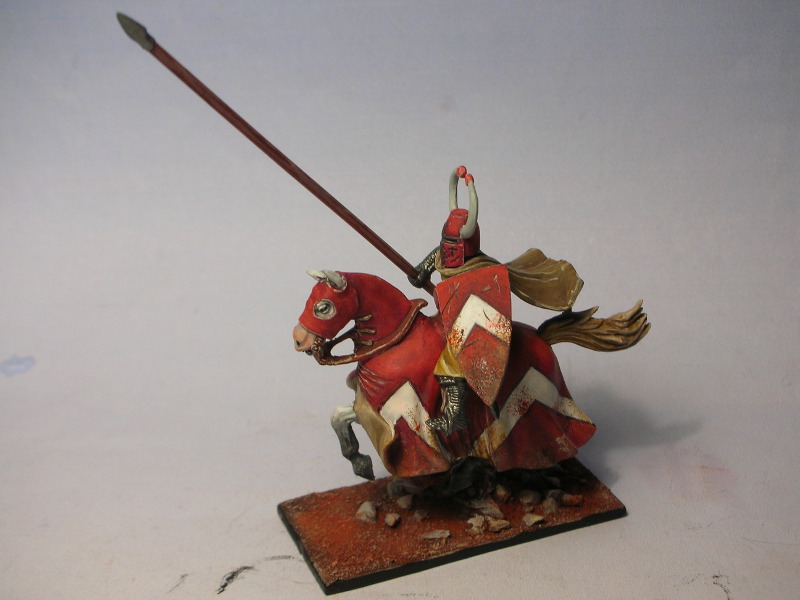 Ich denke er meint vielleicht eher die Schildform, typischerweise sieht man bei (klassischen) Normannen die Kite-Shields die oben abgerundet sind, wie bei deinen anderen Modellen. Ohne meine Hand dafür ins Feuer zu legen, aber ich glaube Schilde mit glatter Oberkante kamen erst so im 12.-13. Jahrhundert in Mode, demnach wären die Schilde zumindest vielleicht für Hastings-Normannen nicht passend. Soviel zu meiner Theorie ;-)