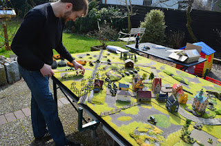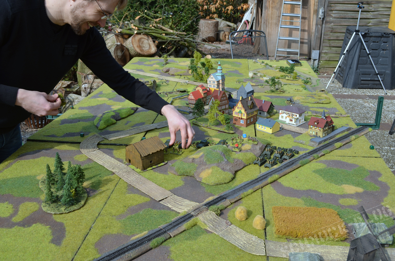 Gespielt wurden zwei Schlachten der russischen Sommeroffensive 1944 - der Kampf um die Ortschaft Orsha und einen Überfall einer deutschen Panzerkompanie auf einen russischen Verfügungsraum. Gespielt wurde nach den \"neuen\" Regeln, was zumindest dem russischen Spieler (Matze) noch arges Kopfzerbrechen bescheren sollte. Da Petrus sich uns wohlgesonnen zeigte, nutzten wir die Gelegenheit für das erste outdoor-Spiel des Jahres. Also haben wir fix das Grammophon rausgestellt, den Grill angeschmissen und schon ging\'s los!