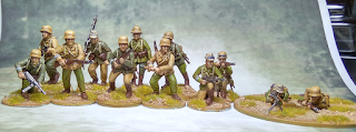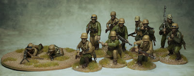 Die Truppe wird vornehmlich fĂŒr \"Chain of Command\" ausgehoben, lĂ€sst sich aber natĂŒrlich auch in jedem anderen 28mm 2. WK Spiel ins Feld fĂŒhren. Bei CoC ist die Armeeaufstellung relativ starr (realistisch), d.h. den Grundstock bildet ein Zug SchĂŒtzen. Dieser besteht aus drei Sektionen a 12 Mann. Die erste Sektion ist auf dem Bild zu sehen. Die anderen beiden folgen in den nĂ€chsten 2-3 Wochen, wenn es gut lĂ€uft.
