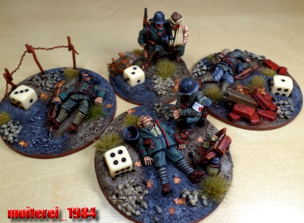 @severus: Du magst wohl recht haben, dass die Jungs u.U. ein wenig zu sauber sind, aber ich bin kein Fan von Schmutz und Dreck auf Spielminis. Für die Vitrine lass ich mir das gerne eingehen, aber auf der Platte sollen die mMn durch starke Akzente wirken. Gleiches gilt für die Verlustmarker, da mir hier der evtl. realistischere \'Gore-Effekt\' einfach ein bisschen zuviel für den Spieltisch ist. Schließlich möchte ich ja nicht die Grauen des Krieges darstellen, sondern gemütlich bei Bier & Brezeln Spaß haben :party: