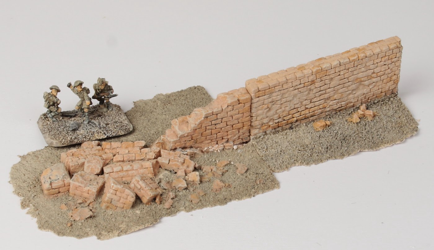 Das aufbringen der Mauerteile (man kann diese Teile natürlich auch vorher bemalt haben) ist relativ einfach, nur einmal eingesetzt, haftet das Acryl sehr hartnäckig.